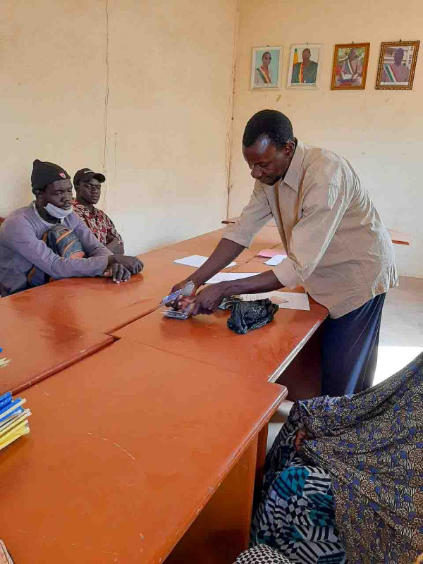 De la main du maire de Bancoumana, versements des fonds pour les AGR et les goûters aux Mères Educatrices des CDPE de la commune.
